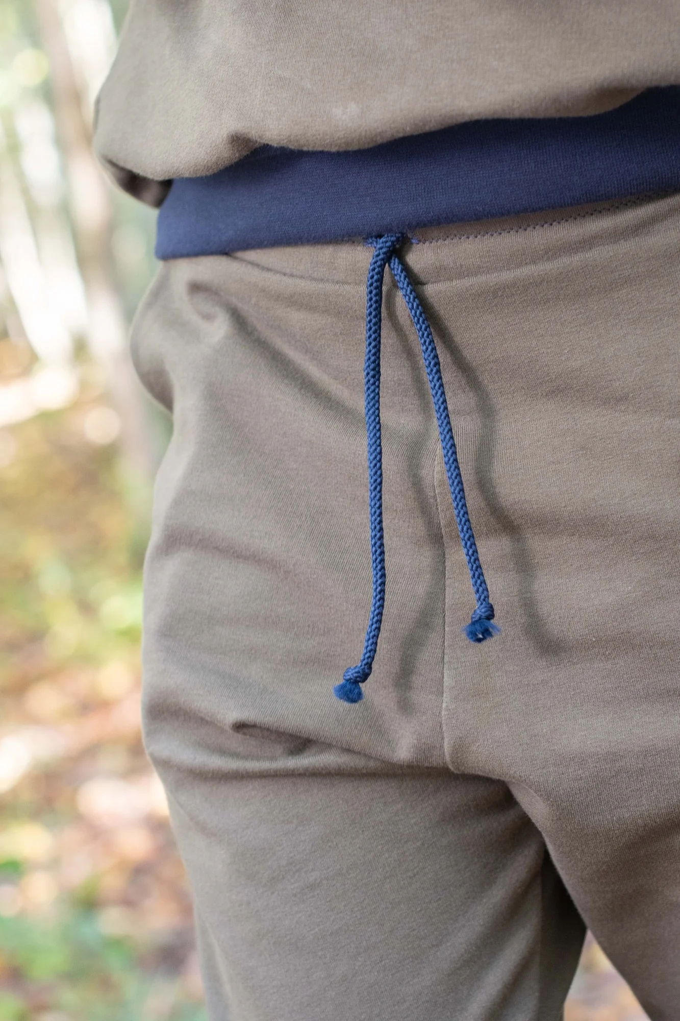 Buy the Baby/Child/Teen Joseph Joggers sewing pattern from Bobbins and Buttons. Joseph is a slim fit joggers pattern for girls and boys. This style features side pockets, optional knee patches that can be applied internally or externally, and an alternative waistband with a drawcord finish.