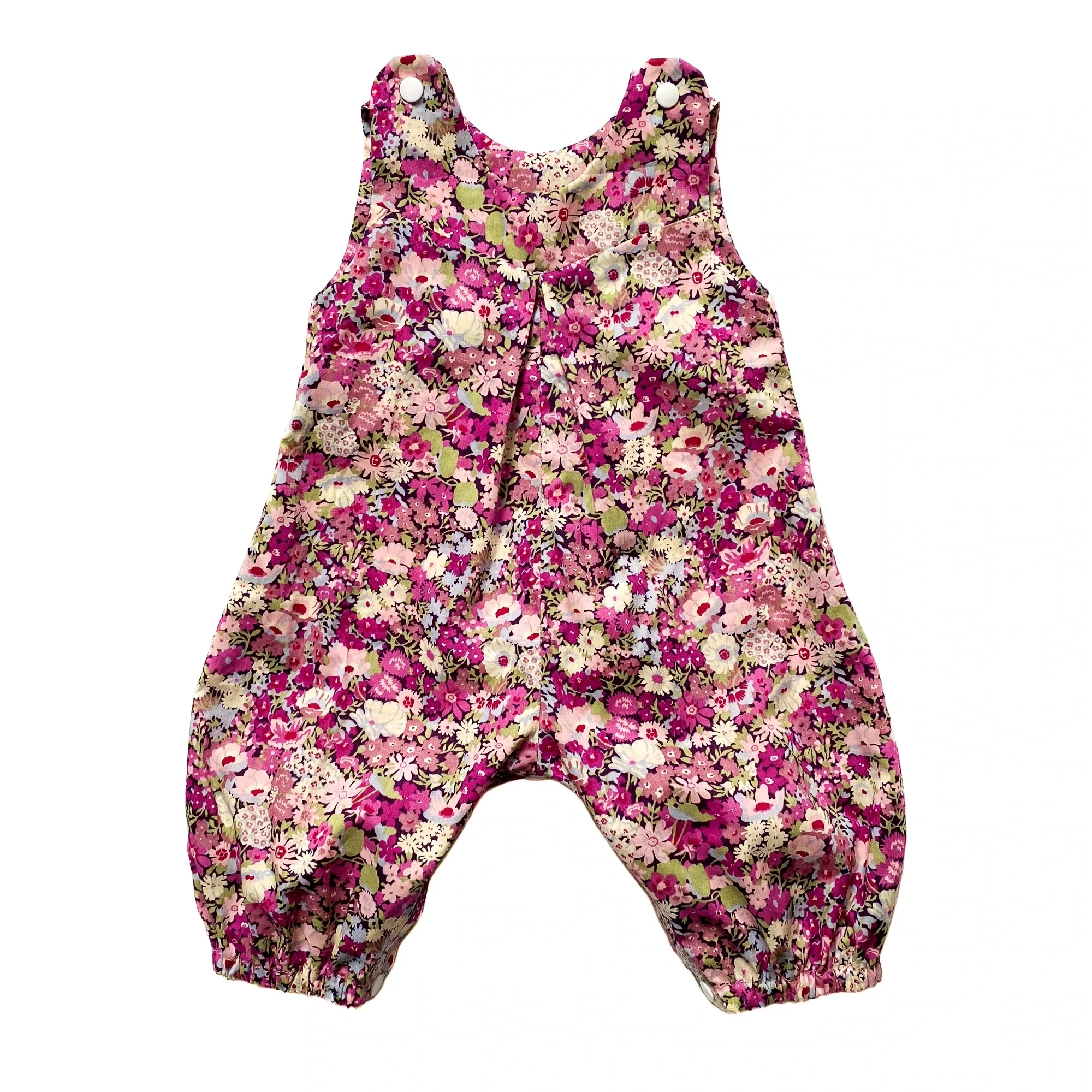 Buy the Babies' Penny Romper sewing pattern from Dhurata Davies Patterns. Penny is the sweetest little romper for babies from birth up to 24 months old. The simple design with the classic vibe is perfect to wear on its own on a hot summer day or over a long sleeve vest and tights in cooler weather. It has poppers (snap fasteners) on the shoulders and leg inseam for easy access. Penny also features a front V shaped yoke, inverted front pleat detail, all-in-one sleeve and neckline facings and elasticated hems.