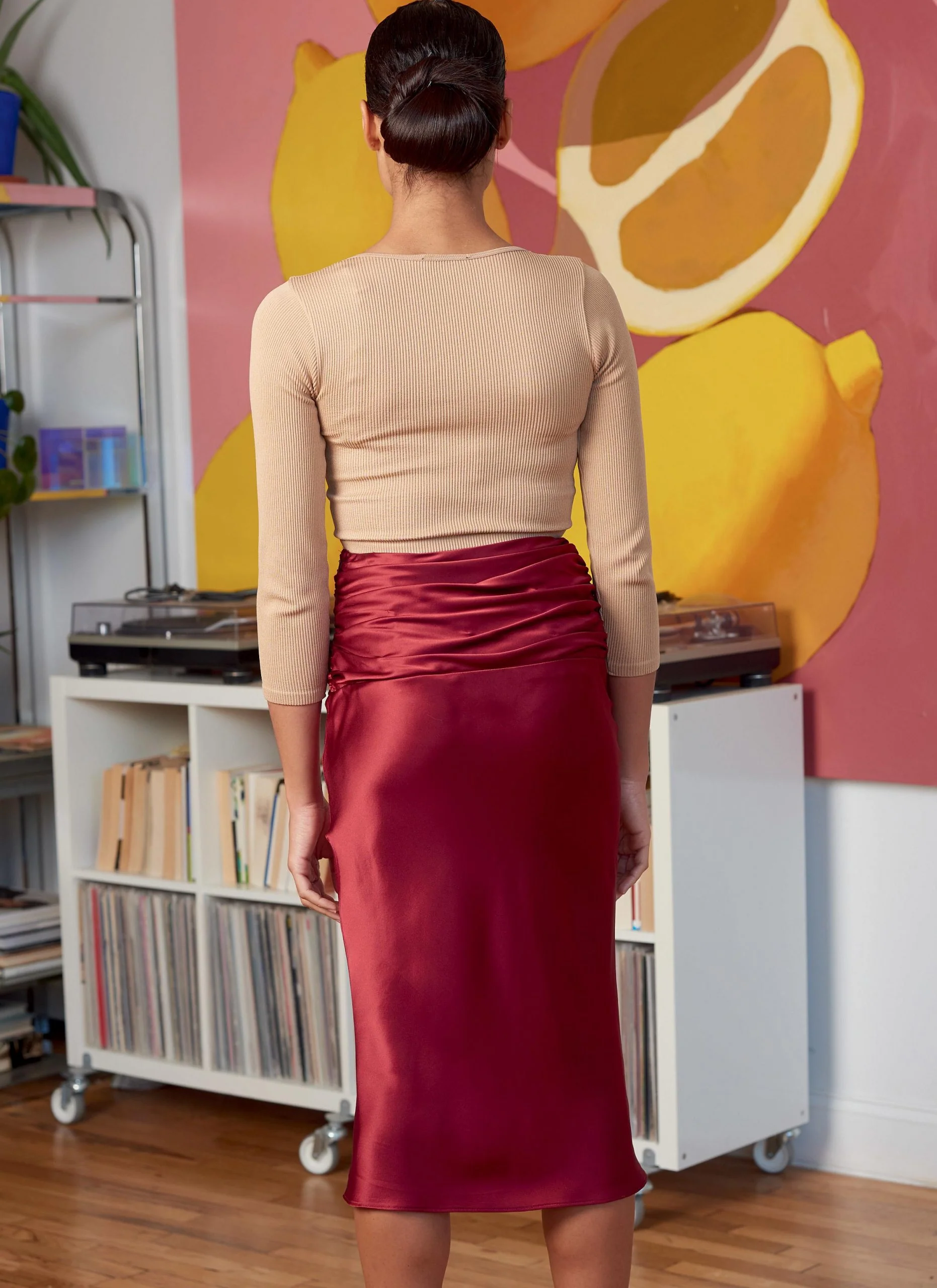 Buy the M8151 skirt sewing pattern from McCalls. It’s perfect for an advanced beginner dressmaker. A bias cut or gathered skirt with gathered overlay yoke.