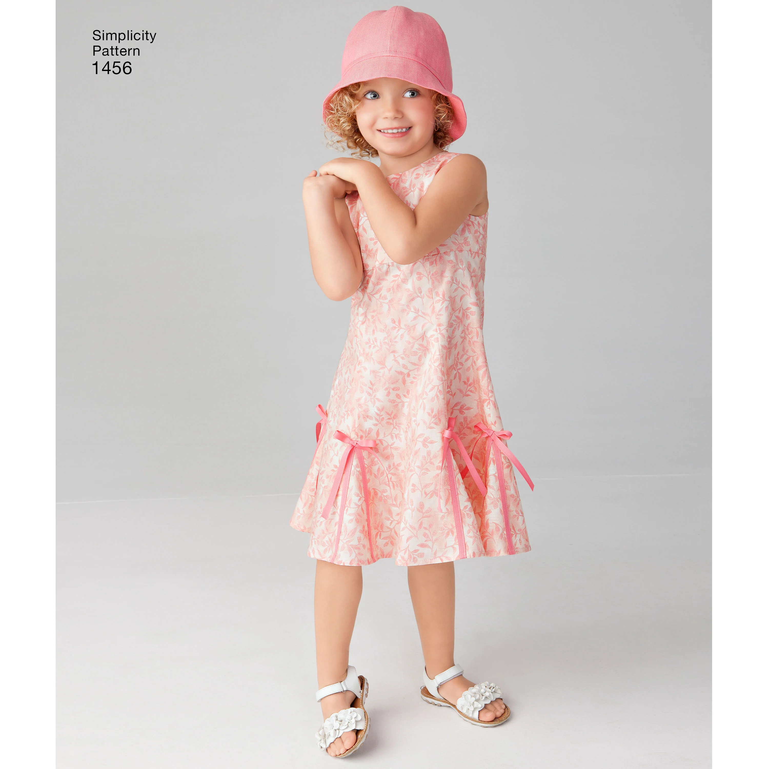 Buy the 1456 child/teen dresses and hat sewing pattern from Simplicity. It’s perfect for an advanced beginner dressmaker. Child’s and Girls’ dress with zippered back and flared skirt can be made with short sleeves, sleeveless, or with double spaghetti straps and bow. Pattern comes with hat in three sizes S, M, L.