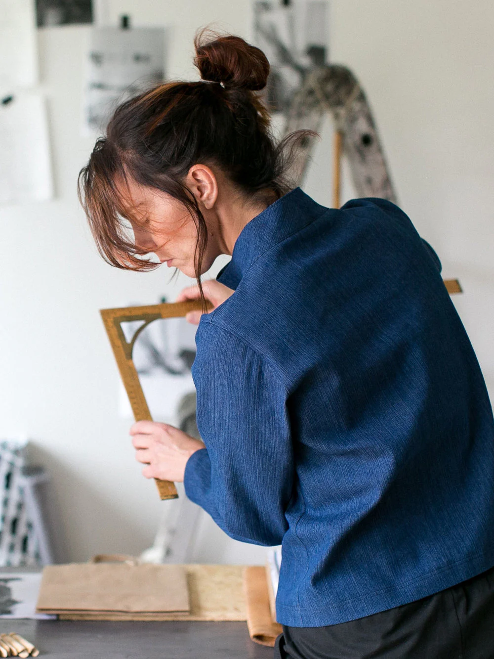 Buy the Elastic Tie Sweater sewing pattern from The Assembly Line. The Elastic Tie Sweater features a high neck tightened with an elastic cord.